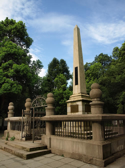 在岳麓山上。墓由三層臺(tái)階百余級(jí)踏步導(dǎo)入,墓碑為一四棱形的整塊4乳白色巖石琢成,全高約10米,因地處岳麓山高峰開闊處,顯得格外聳拔、挺秀、眺望湘江江,長(zhǎng)沙景物盡入眼底。黃光(1874—1916),朱名軫,號(hào)杞園,又號(hào)克強(qiáng),湖南善化(今長(zhǎng)沙)人,辛亥革命重要領(lǐng)導(dǎo)人,史有“孫黃”之稱。1904年組織華興會(huì),翌年8月與孫中山、章太炎等人組織中國(guó)同盟會(huì),曾生動(dòng)并領(lǐng)導(dǎo)欽州、廉州(治今廣西合浦)、鎮(zhèn)獻(xiàn)花(今友誼關(guān))、河口、廣州等地區(qū)反清戰(zhàn)役起義,任民軍戰(zhàn)時(shí)總司令。南京臨時(shí)政府成立,任陸軍總長(zhǎng)。袁世凱稱帝后,任討袁軍總司令。1914年赴美醫(yī)病,1916年病重回國(guó),10月31日于上海病故,時(shí)年43歲,次年移柩長(zhǎng)沙,國(guó)葬于岳麓山。為全國(guó)重點(diǎn)文物保護(hù)單位。
