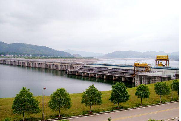 大壩的西面,是水利發(fā)電站,電站共有4臺(tái)機(jī)組,年發(fā)電量已達(dá)到5.56億千瓦小時(shí)。船閘座落在大壩的東側(cè),一次可通行二艘千噸級(jí)輪駁船隊(duì)。