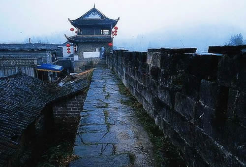 城墻上部為鋸鑿形狀,箭垜300個(gè),還有兩座外突的炮臺(tái)。站在炮臺(tái)之上,遙想當(dāng)年,箭垜旁刀戟林立,炮臺(tái)上人影浮動(dòng),還有城外山頭的碉樓狼煙滾滾,仿佛還看見刀劍交接之影,聽見搏殺呼號(hào)之聲,剎那間產(chǎn)生一種悲壯感。1983年10月黃絲橋古城被列為省級(jí)重點(diǎn)文物保護(hù)單位。