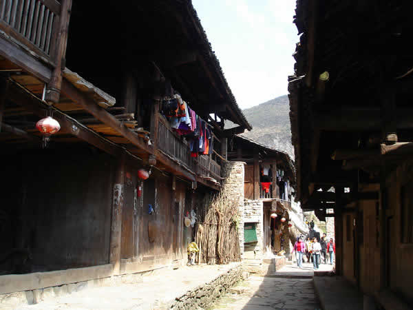流水悠悠,人事蒼桑。到了近代,由于陸上交通的迅速崛起,水上交通漸漸衰落,小鎮(zhèn)慢慢地被人遺忘在峽谷之中了。失去了往日繁華的小鎮(zhèn),并沒有失去多少古色古香的本來面目,使我們今天能通過這殘缺的街道、建筑、店鋪,去感受她逝去的風(fēng)采。古老的風(fēng)火墻、底矮的吊腳樓,向游人展示著土家人的聰明才智,一條條青石板、一聲聲咚咚喹,在訴說著古寨子過去的輝煌。