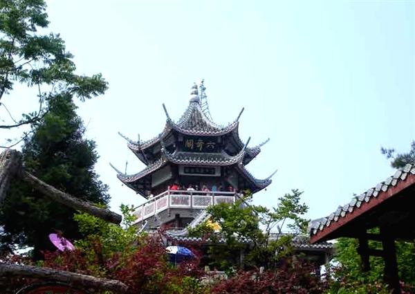 “六奇”是指山奇、水奇、云奇、石奇、動(dòng)物奇、植物奇!敖搅魟氽E,我輩復(fù)登臨”;“欲窮千里目,更上一層樓”。站在閣頂,可以看到袁家界、楊家界、天子山、朝天觀、三姊妹峰……