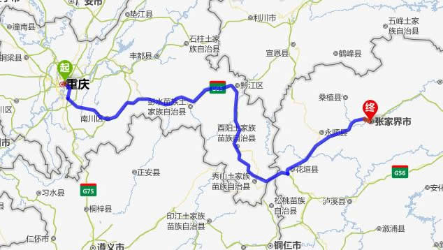 現(xiàn)在位置:張家界旅行社->交通指南->自駕車路線 -> 重慶到張家界自駕車線路,重慶去張家界開車要多長時間,有多少公里
