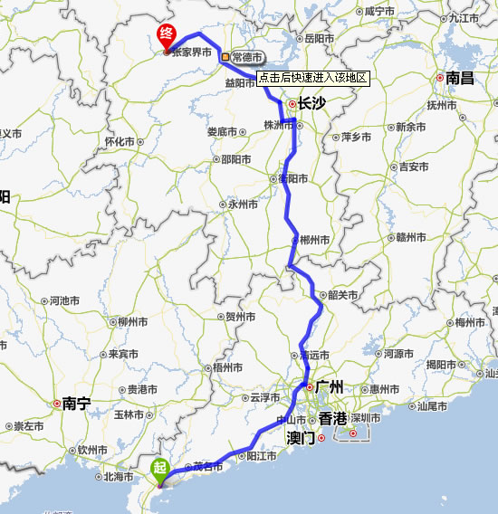 現(xiàn)在位置:張家界旅行社->交通指南->自駕車(chē)路線(xiàn) -> 湛江到張家界旅游自駕車(chē)線(xiàn)路,湛江去張家界自己開(kāi)車(chē)要多長(zhǎng)時(shí)間,有多少公里