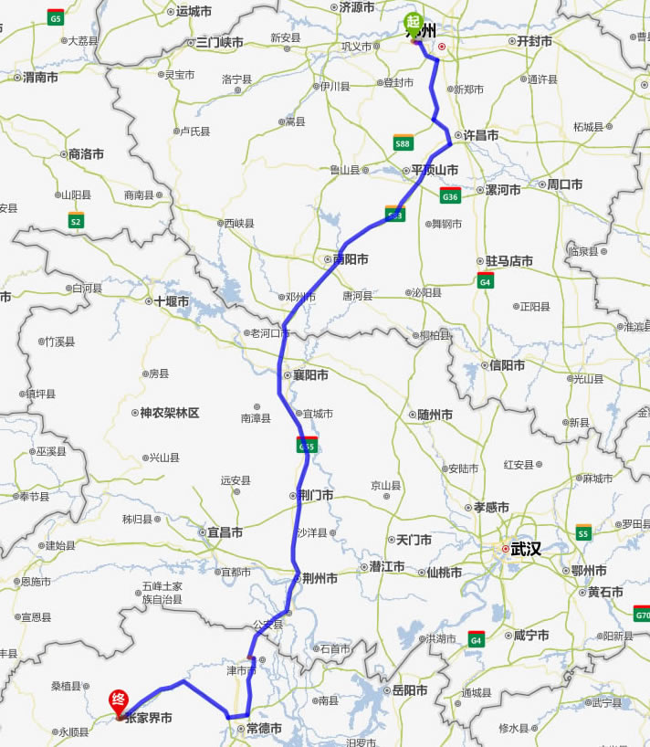 滎陽去張家界自駕車自助游線路圖全程高速):