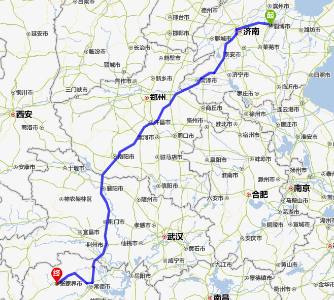 淄博去張家界自駕車自助游線路圖全程高速):