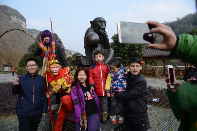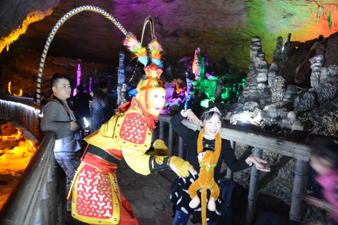 手持金箍棒,頭戴紫金冠。2月2日,農歷臘月二十四,中國傳統(tǒng)小年節(jié)氣。當天下午,旅游勝地張家界武陵源黃龍洞景區(qū),一名“美猴王”打扮的特殊游客現身“后天”雕塑、龍宮大廳、花果山等景點,其惟妙惟肖的“孫悟空”動作表演,不時引來其他游客的驚呼:大圣歸來!